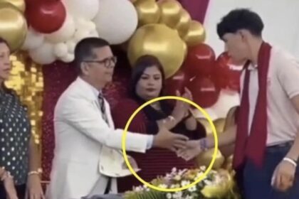 Alumno recién graduado rechaza mano a Director de escuela por malos tratos a su padre