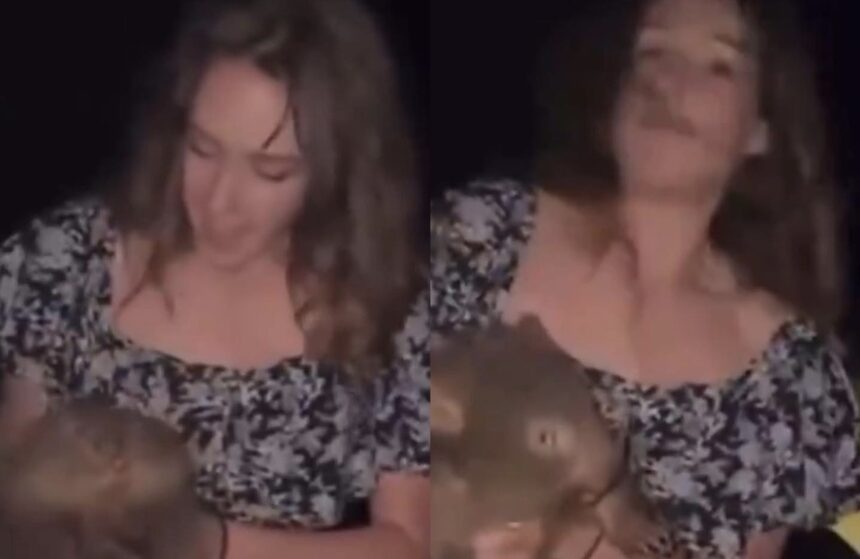 En las imágenes, la mujer aparece corriendo hacia la cría, separándola de su madre, mientras el animal emitía sonidos de malestar. La madre del wombat observaba angustiada a distancia hasta que la influencer finalmente soltó a la cría.
