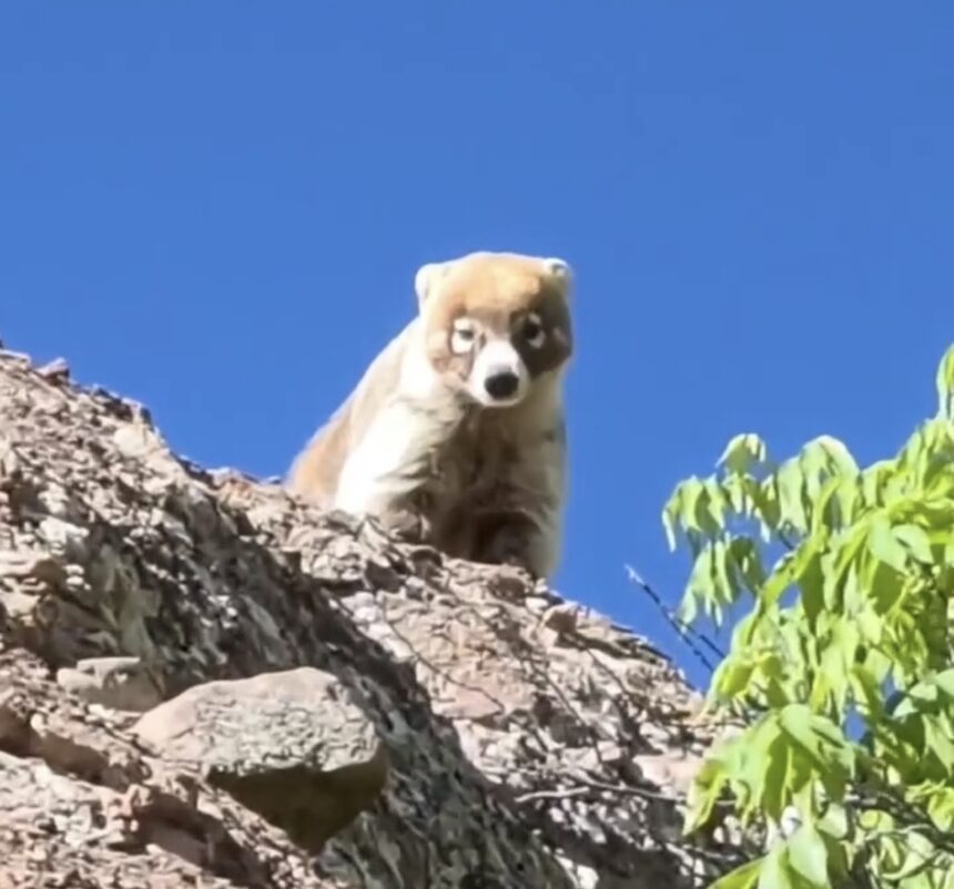 Namurachi, Chihuahua – Un coati de nariz blanca (Nasua narica) fue observado recientemente en la zona, buscando comida entre la vegetación local. Este simpático mamífero, característico de la región, llamó la atención de los habitantes por su curiosa forma de explorar el entorno.