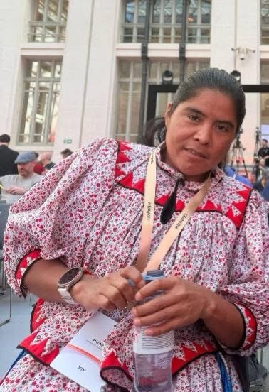 La atleta rarámuri Lorena Ramírez fue invitada como embajadora especial a la presentación internacional del nuevo reloj deportivo de Huawei en Madrid, España.