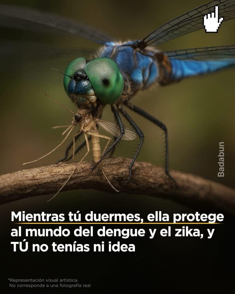 Ciudad de México – Aunque no hace ruido ni busca atención, la libélula cumple un papel crucial en la naturaleza y en la salud humana. Según información documentada por National Geographic, la Smithsonian Institution y el Servicio de Extensión de la Universidad de Florida, estos insectos pueden devorar hasta 100 mosquitos al día, incluyendo muchos que transmiten enfermedades como dengue o zika.